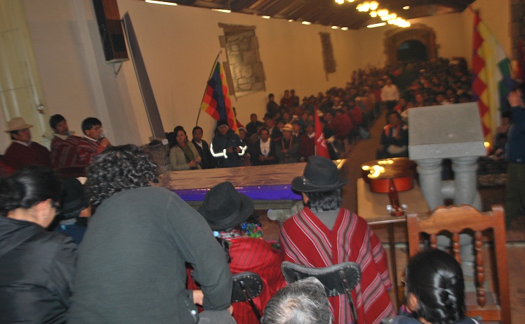 En Iglesia de La Balvanera (Colta) Humberto Cholango (CONAIE) recibio un Lasial y Delfín Tenesaca (ECUARUNARI) una Biblia como símbolos de lucha y resistencia de los Pueblos.